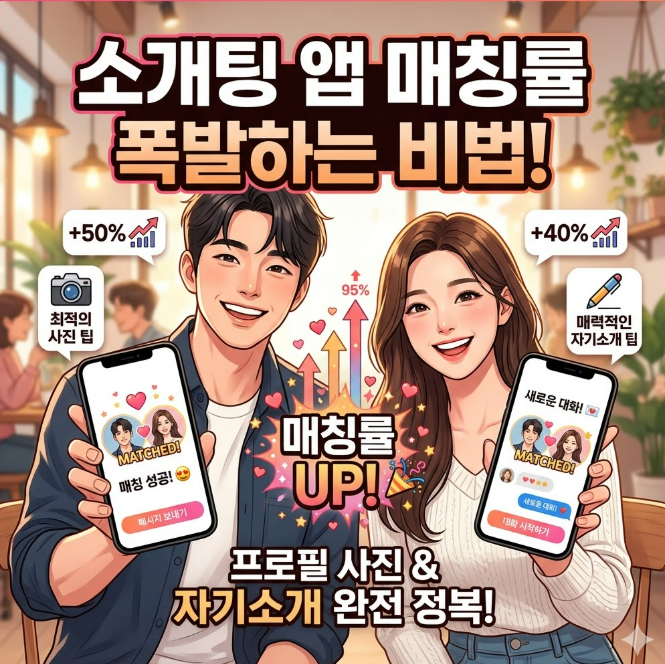 소개팅 앱을 사용하는 사람이라면 누구나 한 번쯤 소개팅 앱 매칭률 높이는 방법을 궁금해합니다. 사진도 나쁘지 않은데 반응이 적고, 프로필도 열심히 썼는데 대화까지 이어지지 않으면 답답함이 커질 수밖에 없습니다. 실제로 많은 사람들이 소개팅 앱 후기, 소개팅 앱 프로필 작성법, 매칭 잘 되는 자기소개, 대화 잘 이어지는 첫인사, 소개팅 앱 사진 선택법 같은 검색어를 자주 찾는 이유도 여기에 있습니다. 단순히 가입만 해두고 기다린다고 해서 좋은 결과가 생기지는 않습니다. 소개팅 앱에서는 아주 작은 차이 하나가 매칭률, 응답률, 대화 지속률에 큰 영향을 주는 경우가 많기 때문입니다.